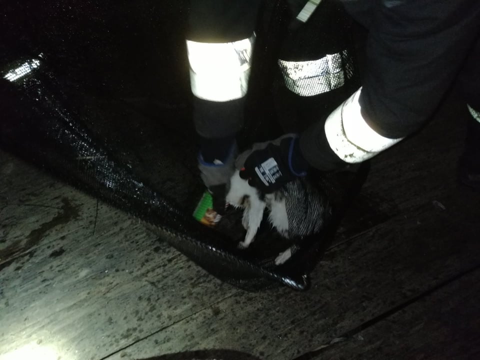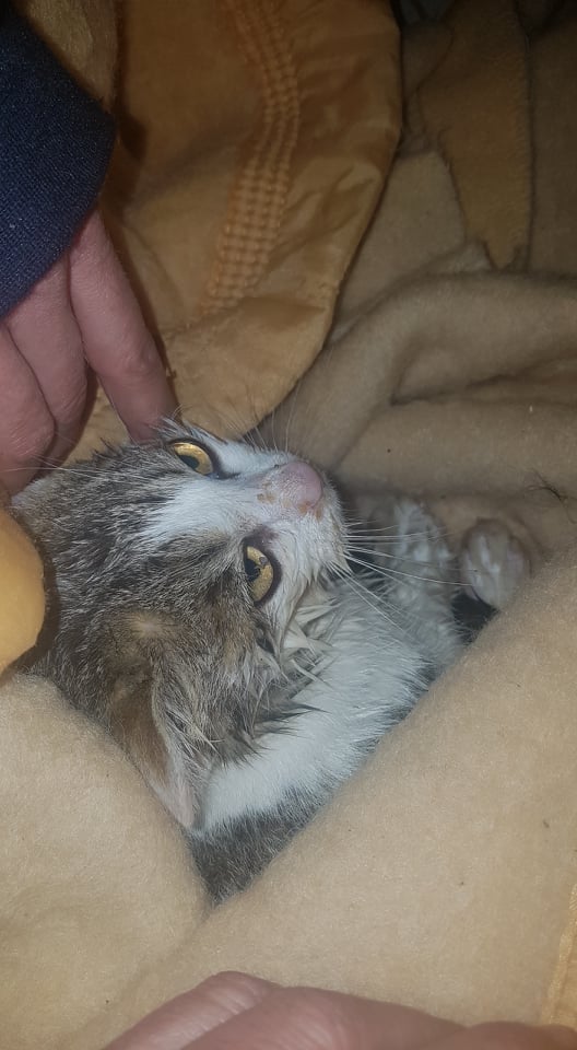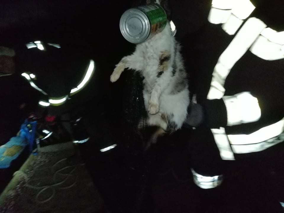 A vékonyan befagyott tóból hálóval kimentették a rémült macskát, aminek feje még mindig a konzervdobozba volt szorulva. A tűzoltók óvatosan kihúzták a fejét a konzervből, és azonnal pokrócba tették, hogy megmelegedjen. Eközben a Nógrád megyei katasztrófavédelem ügyelete már értesítette is az állatvédőket. A fagyos kaland után egy állatvédőhöz szállították a kis macskát, az állat a körülményekhez képest jól van.